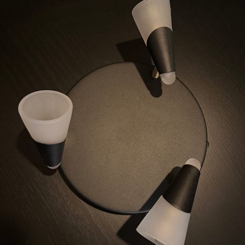 Selger en brukt taklampe. I daglig bruk så fungerer og demonteres ved salg.