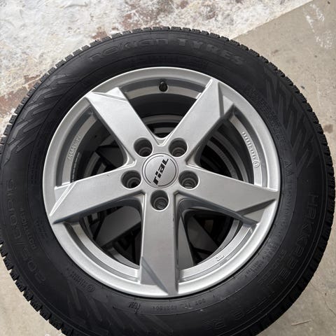 Originalt hjulsett med stålfelger og nesten helt nye piggdekk selges!