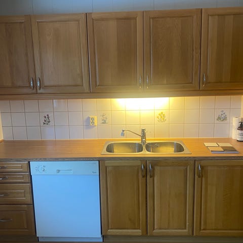 Vi selger vårt pent brukte furukjøkken meget billig mot at du/dere demonterer. Vi er selvfølgelig behjelpelige og kan bidra med bæring.