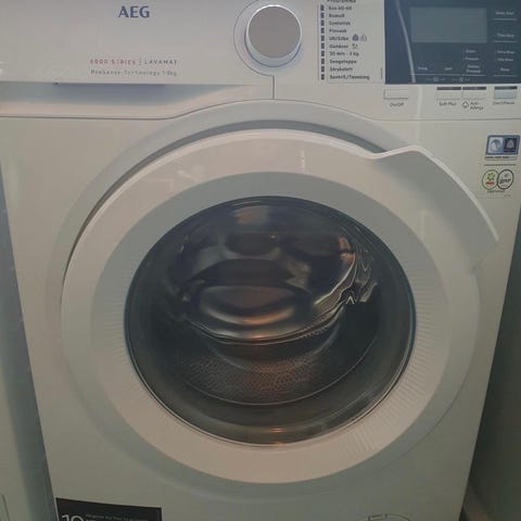 Hvit AEG toppmatet vaskemaskin selges! Maskinen fylles fra toppen og passer godt der det er begrenset med gulvplass.