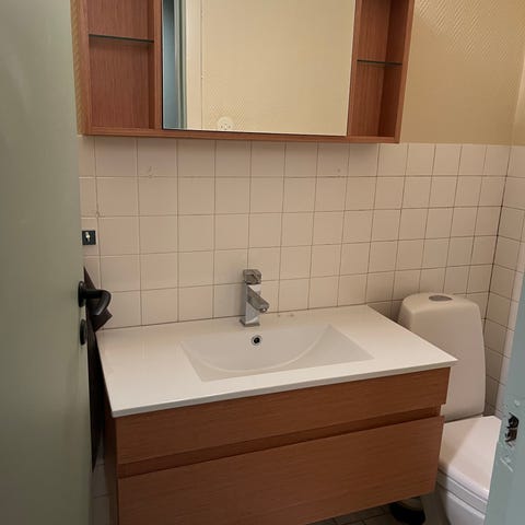 Baderomsinnredning med servant og speil