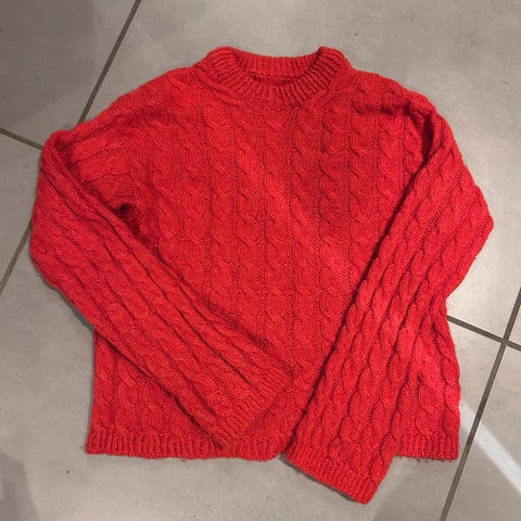 Brukt få ganger. I myk ullkvalitet. Flott flettedetalj på ermene.