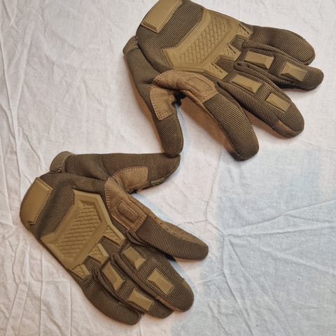 Pent brukt taktiske knebeskyttere i OD green. Universal voksen størrelse. God kvalitet.