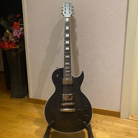 Burny Les Paul Custom bygd i Japan på 1980- tallet selges kr 9900,-. "Black Beauty" i svart finish med gullfarget hardware. Gitaren har solid kropp, to humbucker-pickuper, 3-veis pickupvelger og separate kontrollere for volum og tone. Utrolig lettspillt. Halsen har gripebrett med blokkinnlegg og binding langs kroppen. Leveres med clips-lock gitarreim. Har en del riper (eller platina som man sier) men de fleste vil vel bare synes det er sjarmerende. Leveres med gigbag. Et supert alternativ til en Gibson Les Paul til en brøkdel av prisen. For den som også har lyst til å gjøre som John Sykes, Neal Schon eller Joe Bonamassa, dvs spille på sort Les Paul. :)