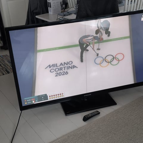 En flott tv med fjernkontroll og veggfeste, Elektra 39 tommer.