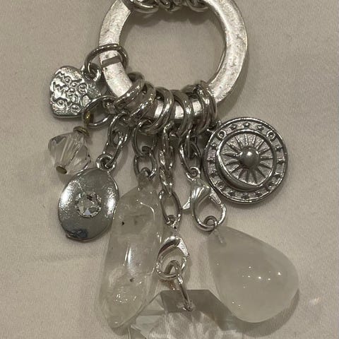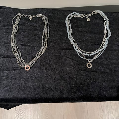 Selger et nydelig statement-smykke fra det populære merket Våga Sweden. Kjedet har et flott lagdelt design med en kombinasjon av sølvfargede lenker og delikate perler i lyse toner. Et elegant tilbehør som passer til både hverdag og fest.