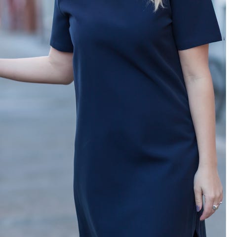 Kjolen har et minimalistisk og elegant design med rett snitt og korte ermer – passer perfekt til både hverdag, jobb og penere anledninger.