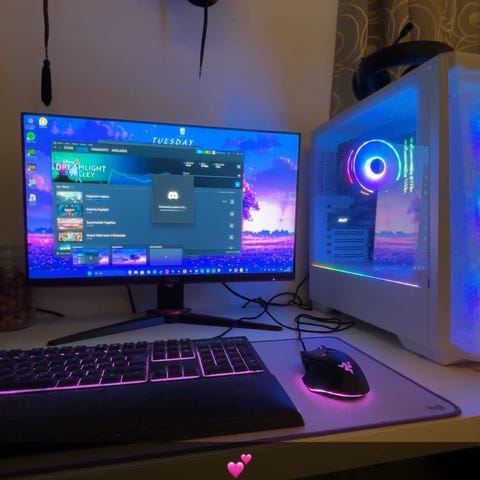 En pent og sterk stasjonær PC til salg med Asus gaming skjerm