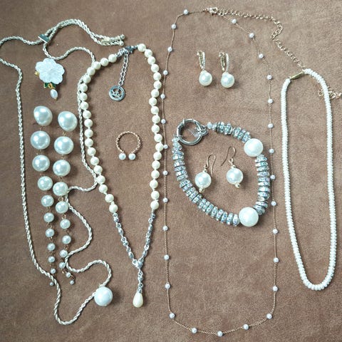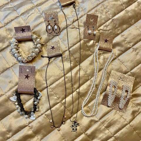 Selger en samling med elegante og feminine smykker som en pakke (lot). Perfekt for deg som elsker vintage-stil og unike detaljer.