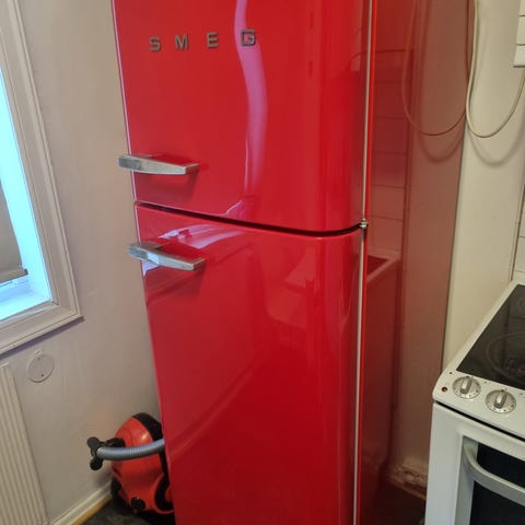 Flott kjøleskap fra Smeg i turkis/mintgrønn! Retro modell med både fryser (26 liter), grønnsaksskuff, justerbare hyller og innvendig lys. Kjøleskapet er i topp stand.
