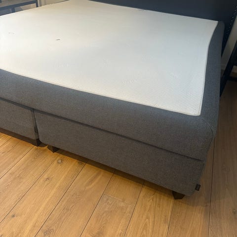 Grå Jensen Nova Max 180x200 seng. Sengen trenger en ny overmadrass, men er ellers hel og pen. Sengen ble kjøpt januar i 2012 og har med unntak av 2-3 år der den stod på lager vært i bruk. Tilhørende sengegavi tølger med