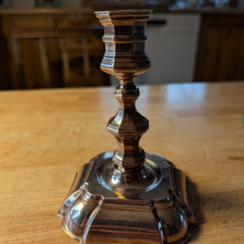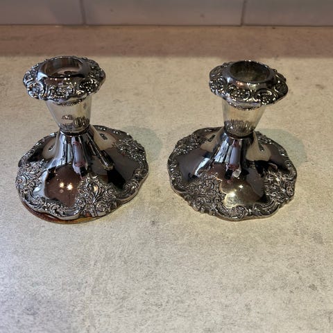 Pen sølvfarget lysestake til kronelys selges kr. 100,-