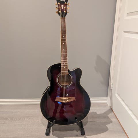 Nypris på gitaren i dag rundt 5 000 kr. Link: https://reverb.com/item/3431201-ibanez-ael2012e-tks-12-string-electro-acoustic-guitar-transparent-black-sunburst