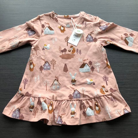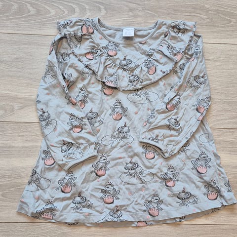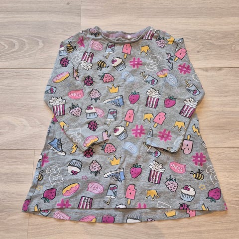 Søt tunika med lange ermer fra Lindex. Str 104. Rosa, med festlig mønster.