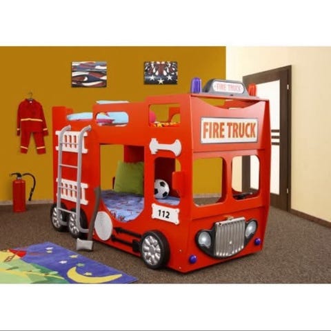Selger vår morsomme og flotte brannbilseng, da minstemann er ferdig med den! Gøyal og solid køyeseng som kan brukes til både lek og soving.