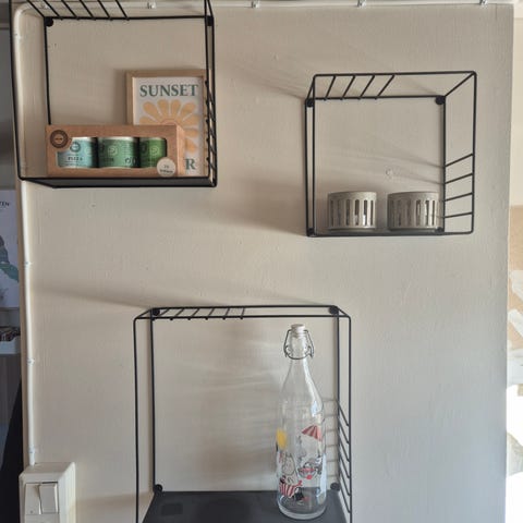 3 stk svarte vegghyller i ulik str selges.
