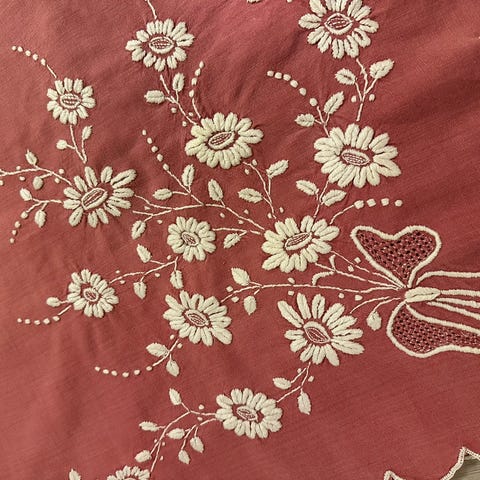 Maskinbroderi og håndbrodert.