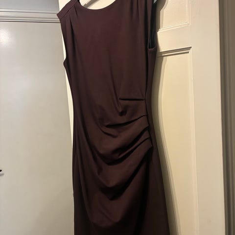 Flott kjole som passer både til hverdag og fest. Kroppsnær med fin rysjedetalje i venstre side. Litt nupper på ryggen.