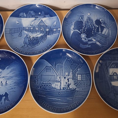 8 julepletter fra 1982-1987 og 1990 utgitt av porselensfabrikken Desiree Danmark. Selges samlet.