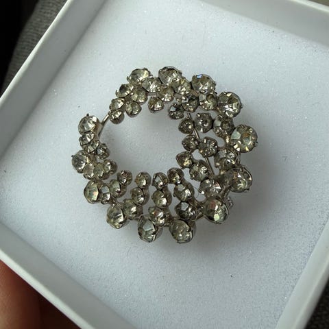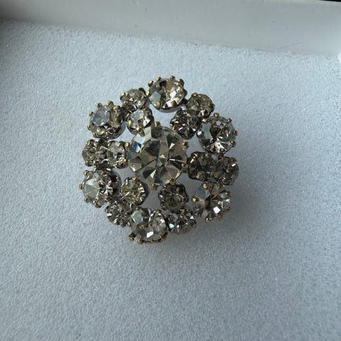Nydelig, vintage brosje med flotte blanke stener som skinner flott i solen.