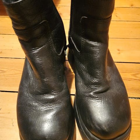 Fine, kun lite merke foran på ene skoa. Se bilder. Sitter godt, kvalitetsko, glidelås bak