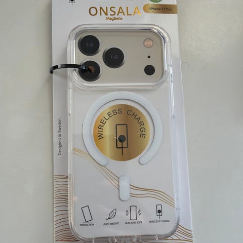 Dekselet er laget for iPhone og har integrert løsning for trådløs lading. Det er et klart plastdeksel som beskytter baksiden og kantene på telefonen, samtidig som designet på telefonen fortsatt er synlig.