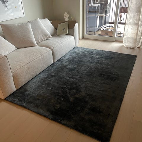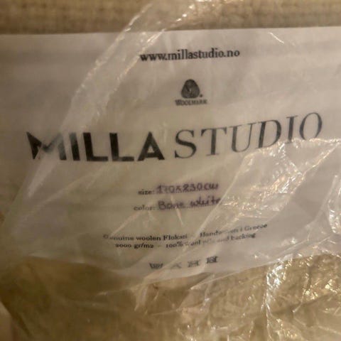Bargi, Fluffi, rufsete langhåret teppe. Hvitt. Pent brukt, men bør renses. Kjøpt på Milla Studio. Ny pris 12.000.-