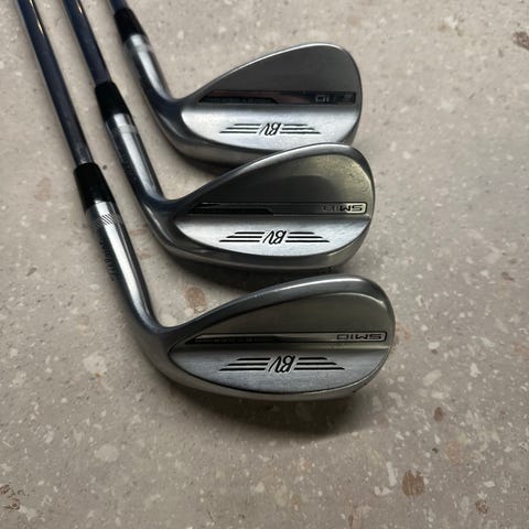 Titleist Vokey Design to sm8 wedger og en sm7. wedger med loft 52°, 56° og 60°. Klassiske bladwedger i metall med standard skaft og grep. Egnet som gap wedge, sand wedge og lob wedge for spillere som ønsker et komplett wedgesett med tre ulike loft for nærspill og slag rundt greenen. disse selgses billig pga overgang til nye wedger, og er et bra alternativ for alle nivåer