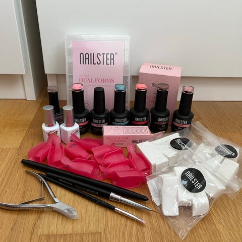 Brukt én gang – kun den burgunderrøde fargen er testet, de to andre er helt nye. Jeg har innsett at jeg er helt håpløs på å legge gelénegler selv, så dette blir ikke brukt mer 😅 Kvaliteten på gelen er veldig god!