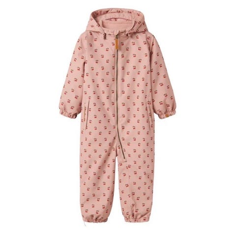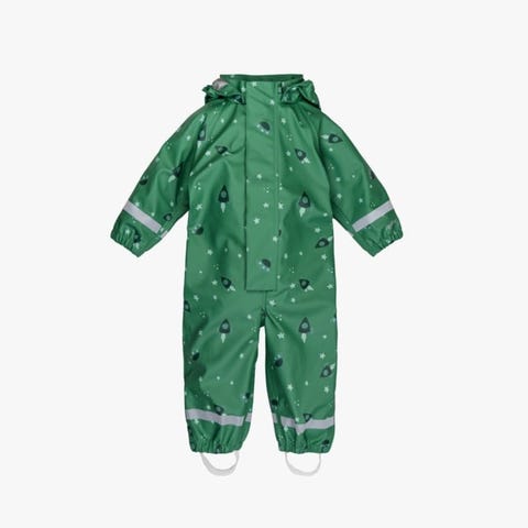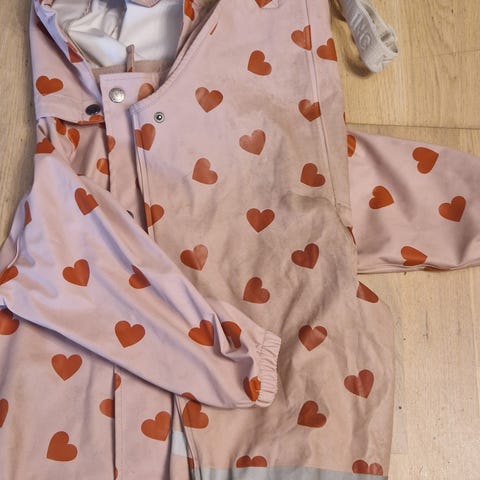Helt ny regndress for jente i størrelse 86/92. Regndressen er rosa og er laget i polyester. Den har hette, lange ermer og lange ben med strikk nederst samt fotstrikker. Glidelås foran gjør den enkel å ta av og på. Egnet som yttertøy i vått vær for små barn.