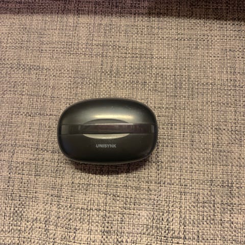 Unisynk trådløse ørepropper med svart ladeetui. Øreproppene leveres i et kompakt etui som også fungerer som lader. Produktet inkluderer ladekabel og ekstra tilbehør som vist på bildene. Egner seg for bruk med kompatible mobiltelefoner, nettbrett og andre enheter som støtter trådløs lydtilkobling.
