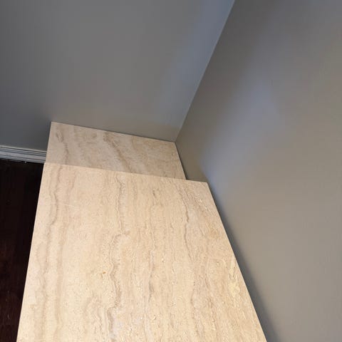 Como salongbord fra Bolia. Designet av Glismand & Rüdiger. Ben i rustfritt stål og stentopp i fargen travertin. Ny pris 22235,-