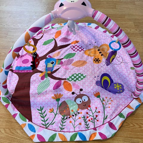 Babygym leketeppe med aktivitetsbøyle grå flerfarget
