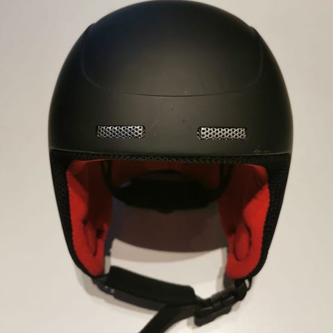 Etto Chilli Jr alpinhjelm for barn i størrelse S (52–54 cm). Hjelmen er svart med motiv og har justeringshjul i nakken for bedre passform. Ventilasjonsåpninger på toppen gir lufting under bruk. Egnet til alpint og annen vintersport der hodebeskyttelse er nødvendig.