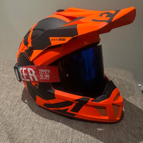 FXR Helium Fullkarbonhjelm. 1000 g. Med autobuckle. Størrelse L. Til snøscooter/snøskuter