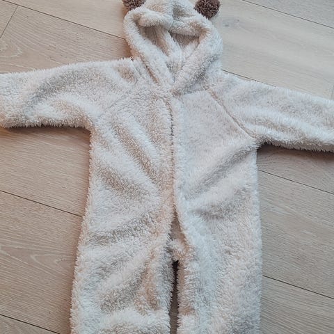 2 stk tykke bamsedresser, bomull, fra H&M. Brun: str 62, hvit: str 68. 50 kr stk.