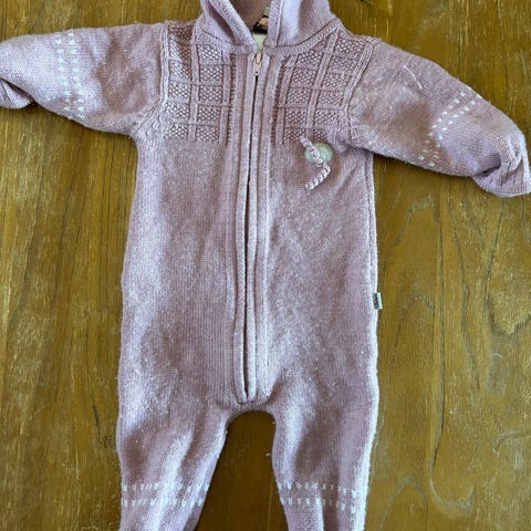 Lillelam ulldress sett for jente i størrelse 68. Sett i rosa ull som består av heldress med glidelås, lue, og votter. Selges samlet for 400kr