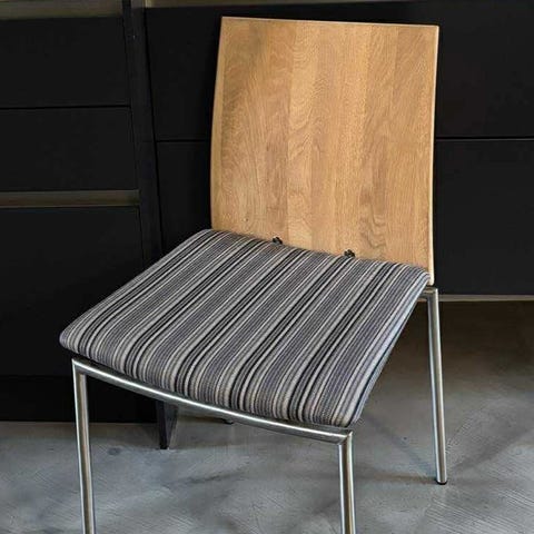 Vi selger våre pent brukte Skovby stoler - modell sm66. Hvitoljet eik og sort skinn.