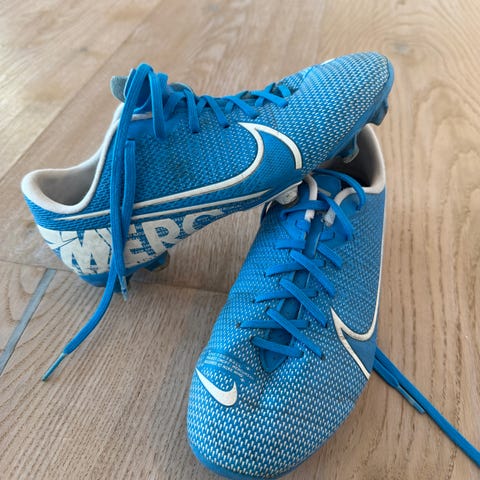 Nike Mercurial fotballsko i rosa med sorte detaljer. Modellen har snøring foran og yttersåle med faste knotter til bruk på gress- eller kunstgressbaner. Overdelen er i syntetisk materiale som er lett å rengjøre. Skoene er lave rundt ankelen for god bevegelighet. Egnet til fotballtrening og kamp for barn eller ungdom, avhengig av størrelse.