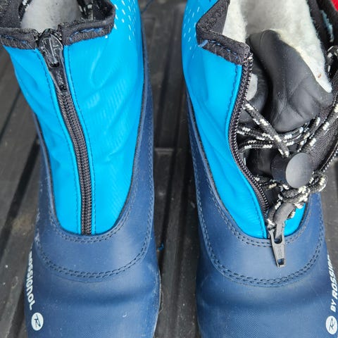 Rossignol langrennsko i blå og mørk blå farge. Str. 31. Skoene har varm, myk innersko med fôr og glidelåslukking foran som beskytter lissene. Yttersålen er tilpasset klassisk langrenn med rottefella bindingssystem (se bilde av såle for detalj). Overdelen er laget i syntetisk materiale som er lett å tørke av.