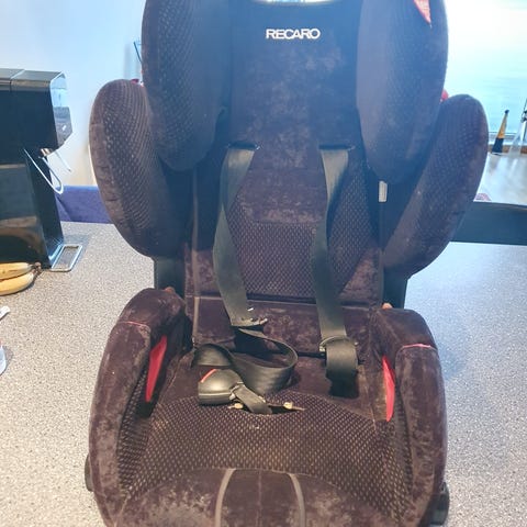Recaro barnesete for barn fra 9 til 36 kg. Setet har integrert rygg og justerbar hodestøtte. Det brukes fremovervendt og festes med bilens trepunktsbelte. Barnesetet har polstrede sidevinger og belteføring for skulderbelte. Trekket er tofarget i svart og lilla. Godkjent etter ECE 44/04 for vektklasse 9–36 kg (gruppe 2/3). Egnet til bruk i personbil på sitteplass med trepunkts sikkerhetsbelte.