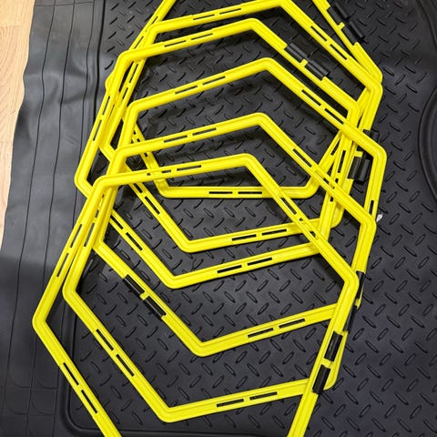 Umbro koordinasjonsstige treningsutstyr i gul farge. Stigen består av gule trinn festet i bånd, og leveres i bærebag med skulderreim for enkel transport og oppbevaring. Egnet til koordinasjons- og hurtighetstrening på for eksempel fotballbane, hallgulv eller annet jevnt underlag. Kan brukes til ulike øvelser for både barn, ungdom og voksne i idrettslag eller individuell trening.