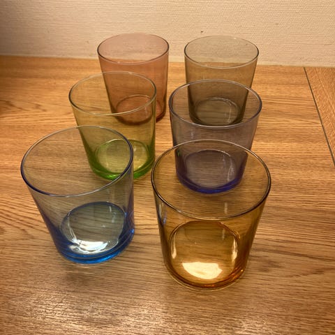 PS, det gule glasset har et lite skår, mens resten er i fin stand