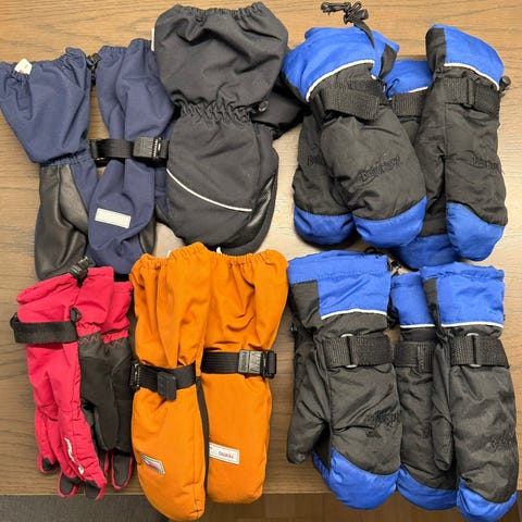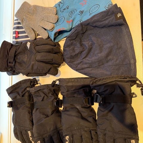 Hjemmestrikket ullvotter - favoritt her da de er varme med god bevegelighet. (Lite hull på en tommel), ca str 5-6 år (?) - 50 kr.