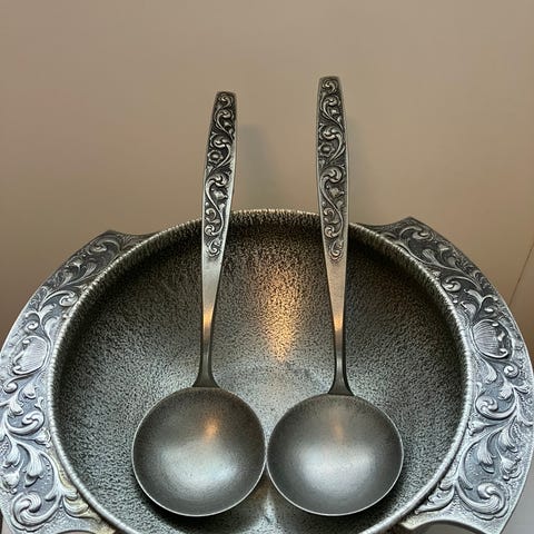 Dette er en antikk tinnbolle fra den danske produsenten Ernst Dragsted, kjent for sitt skandinaviske design og håndverk.