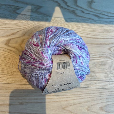 KidSilk Erle garn i flerfarget variant. Garnet kommer i nøster på 50 g med en lengde på ca. 325 m per nøste. Et lett og luftig garn som egner seg til strikking og hekling av blant annet gensere, sjal, skjerf og andre plagg eller tilbehør hvor man ønsker et tynt og mykt uttrykk. Etiketten viser anbefalt pinnestørrelse 3,5–5 mm og vanlige vaske- og stellråd for denne garntypen.