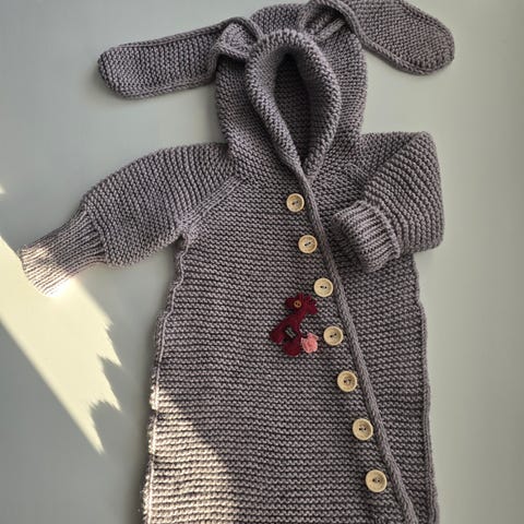 Strikket kjørepose " Bunny" 0-3 mnd. Strikket i Drops big merino.