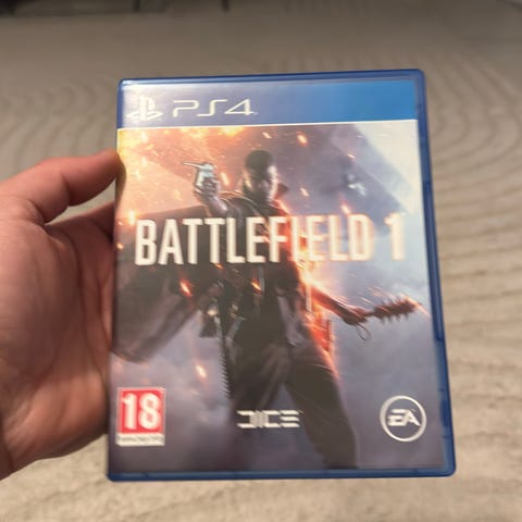 EA Battlefield 1 Playstation 4 spill. Action- og skytespill satt til første verdenskrig, med både enspillerkampanje og flerspillermodus. Spillet er på Blu-ray-plate i original PS4-eske. Aldersgrense 18 år ifølge PEGI-merkingen på omslaget.