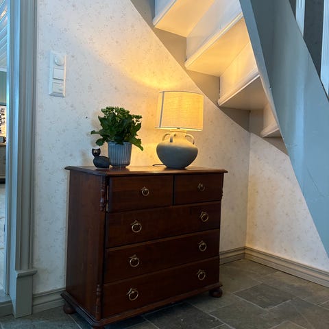 tapetsert innvendig i skuffene.