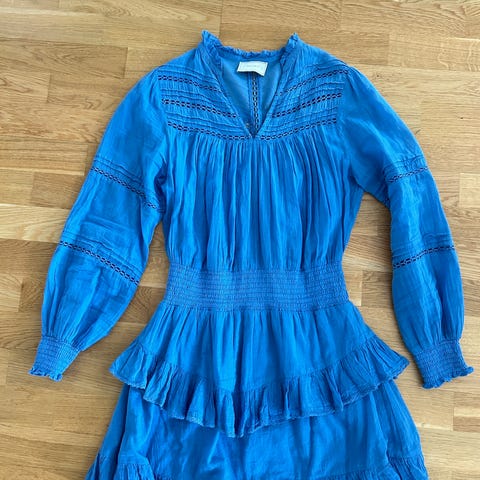 Neo noir kjole ikke brukt.str.40.selges!markert midje med strikk bak som fremhever figuren.Lys bunn Medhus lys blå print.Perfekt til vårens og sommerens festlige anledninger.kan styles opp eller ned med sandaler eller sneekers.